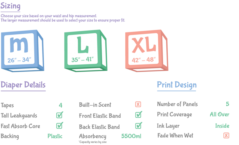 Our prehistoric find takes everyone back to a land before the worries of leaks, and a time before faulty sticky tapes to the land of DinoRawrZ, where practical play meets padded fun. With a pair of super strong hook and loop closures, these diapers were made to stay put, ensuring your adult diaper stays where it needs to be. Now everyone can enjoy an anciently cute crinkle!
