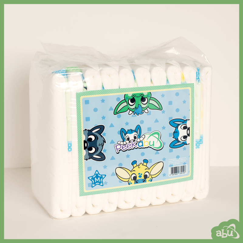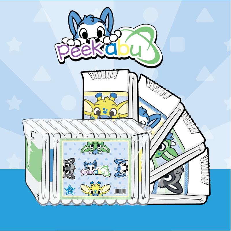 ABU is proud to present PeekABU, a diaper that is so adorable and absorbent you’ll always have a smile and stay dry longer! Shy and ultra-cute animal characters make a big appearance on PeekABU’s landing zone, just at the right height to peek over and say hello! With a newly designed diaper shell featuring a thinner and lighter construction, super quick-absorb core, never give up tapes, and amazing 6250mL capacity, your worry days for diapers that can’t keep up with you are over!