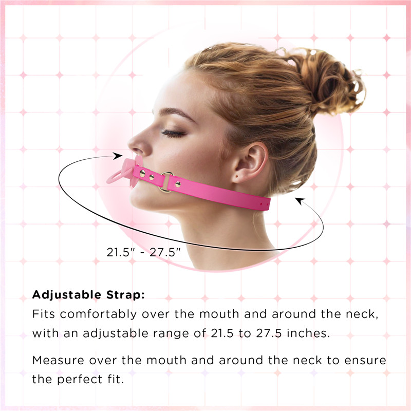 - Premium Materials: Crafted from high-quality, double-layered leather, this pacifier gag offers a luxurious feel while being durable enough to withstand frequent use. The materials are non-toxic and safe for prolonged contact with the skin. The leather is resistant to fading and wear, maintaining its softness and aesthetic appeal even after extended use. The pacifier itself is made from food-grade silicone, ensuring it is safe, hygienic, and easy to clean as well as providing a premium mouth-feel.
