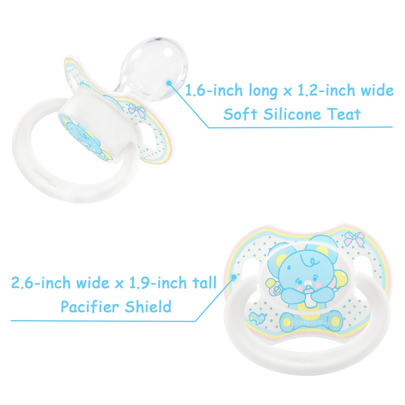 - Generously Sized Teat and Shield: Enjoy the comfort of a 1.6 inches long and 1.2 inches wide teat, complemented by a 2.6 inches wide and 1.9 inches tall shield. Our pacifier ensures a secure fit and peace of mind.