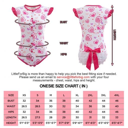 LittleForBig feature adorable prints and bright colors just like real baby onesies! Our prints and patterns are all upsized for adults so that you can look as little as you feel.LittleForBig adult baby onesies are made of 100% soft organic cotton that stretches to fit many body types. Unlike other brands, LittleForBig products are made to hug the body for a snug and secure fit. A row of 3 press snaps secure the onesie at the crotch, providing plenty of support whether you wear a diaper under your LittleForBig onesie or not.