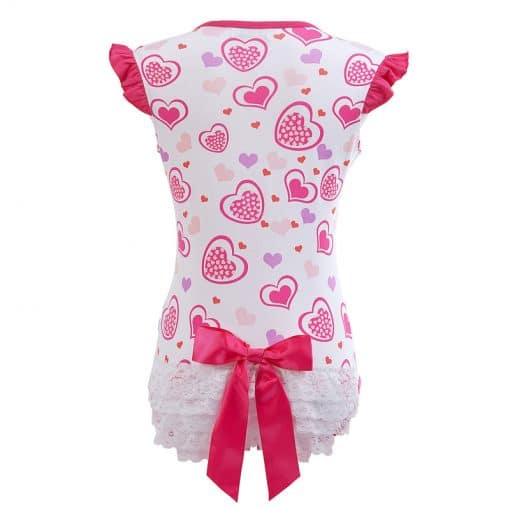 - Front snaps, and crotch snaps for easy dressing. Heart shape buttons, lace ruffle, and short frill sleeves for cute and sexy style.