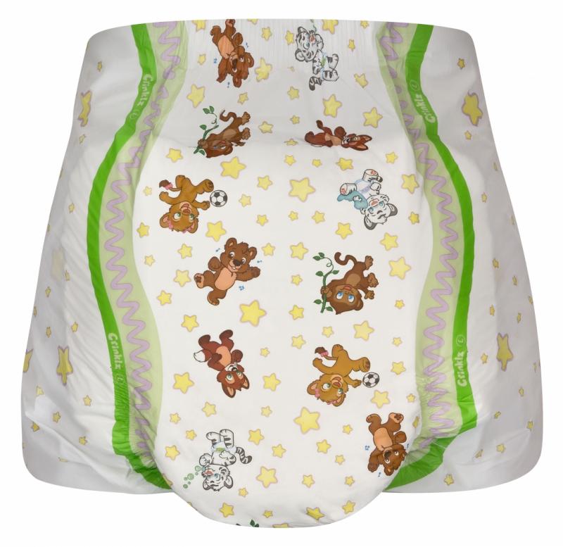 Crinklz Large är lämplig för tunga till mycket tunga former av inkontinens. Däremot kan rörliga personer med lättare former av inkontinens även använda dessa blöjor för maximalt skydd.