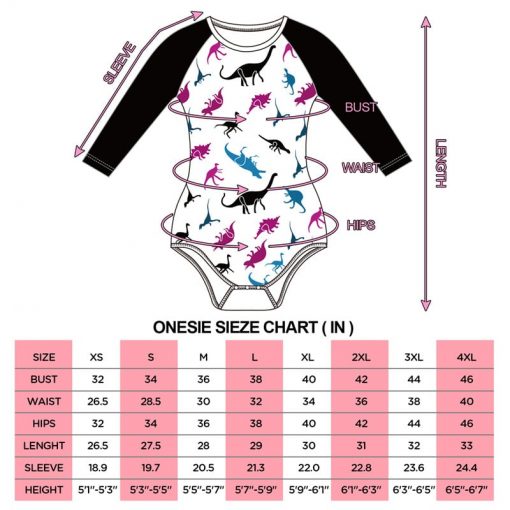 - Vibrerande färgade utskrifter som liknar de som finns på äkta baby bodyhar förstorats för att ge samma vackerhet för vuxna.
