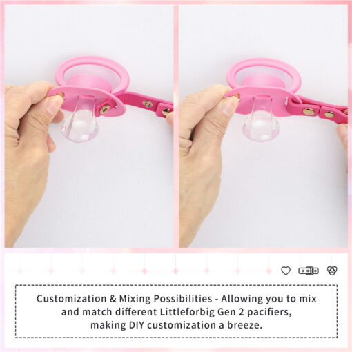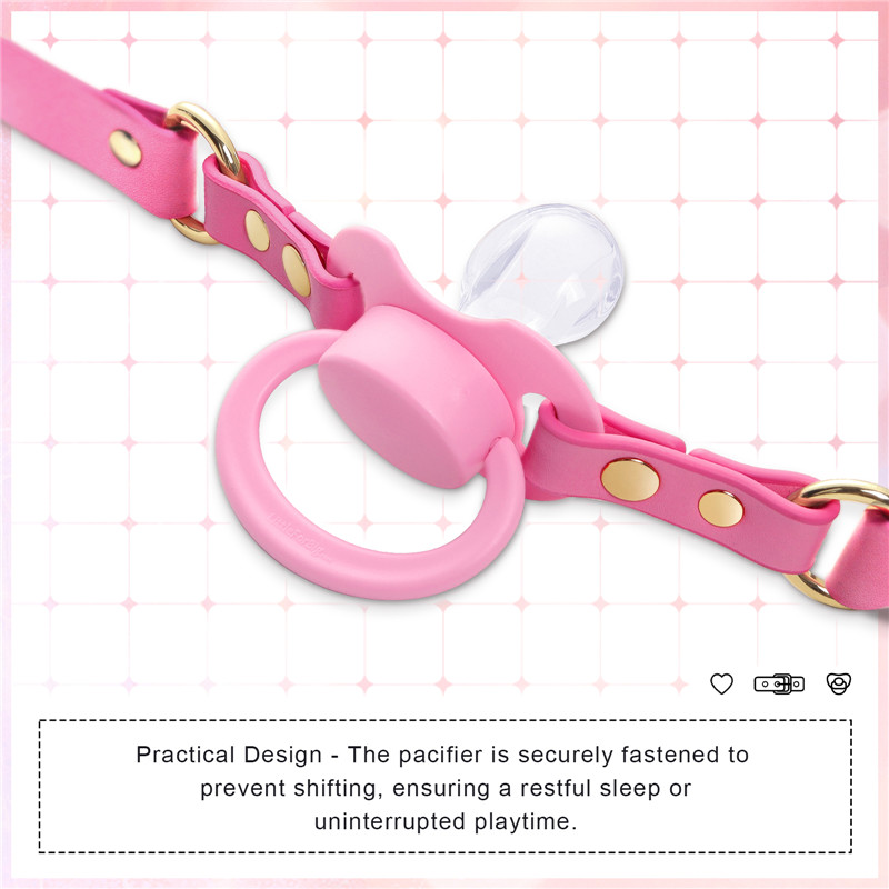 Gen II Pacifier & Gag Set är utformat med fokus på komfort, säkerhet och en fantasifull upplevelse. Tillverkat i dubbellagerläder med ett justerbart band på 54,5–70 cm, vilket ger exakt kontroll över passform och åtdragning och minskar risken för belastning på tänderna. Nappen sitter säkert fast för att förhindra att den rör sig, vilket ger en trygg känsla både vid vila och lek. Den robusta konstruktionen gör den perfekt för långvarigt bruk.