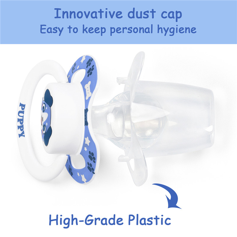 🐶 Söt tryckt napp Upplev charmen med våra Little Blue‑nappar, designade för vuxna nappentusiaster. Med ett bedårande blått hundmotiv på knappen och “Puppy” på skölden — perfekt för både glädje och komfort.