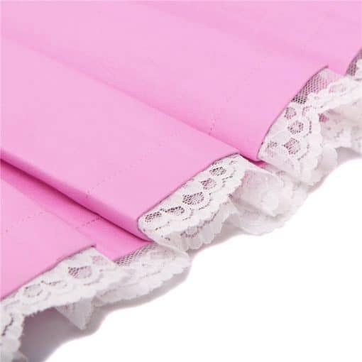Kjol i fuskläder med specialtillbehör i handbojor i bältet och på de två fashionabla remmarna och spetslisterna.