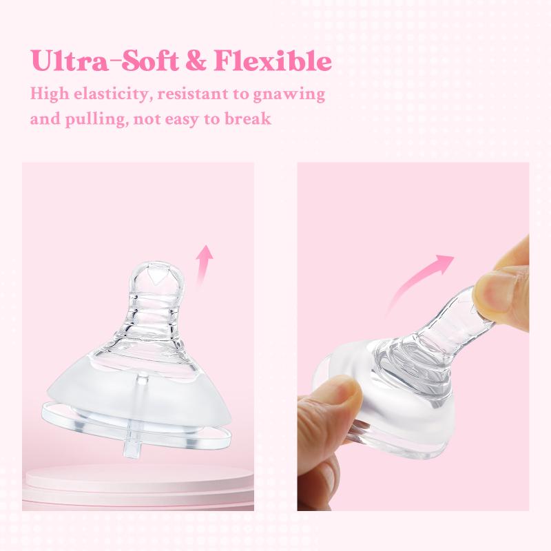 Den inbyggda antikolikventilen minskar luftintag och hjälper till att förebygga gaser, uppstötningar, rapar och obehag. Det precisionsutformade ventilationshålet ger bättre kontroll över flödet och skapar en mjukare, mer anpassad matningsupplevelse.